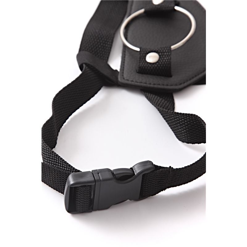 Arnés femenino con aro chico de 5cm de diámetro. Resistente. Lavable con paño húmedo. Espesor de 6mm, Cinta en la cintura regulable desde talle xxs al 6xl. Elásticos para mejor contacto con la piel en entrepiernas. Se acomoda al cuerpo conservando su anatomía. Soporta cualquier accesorio.